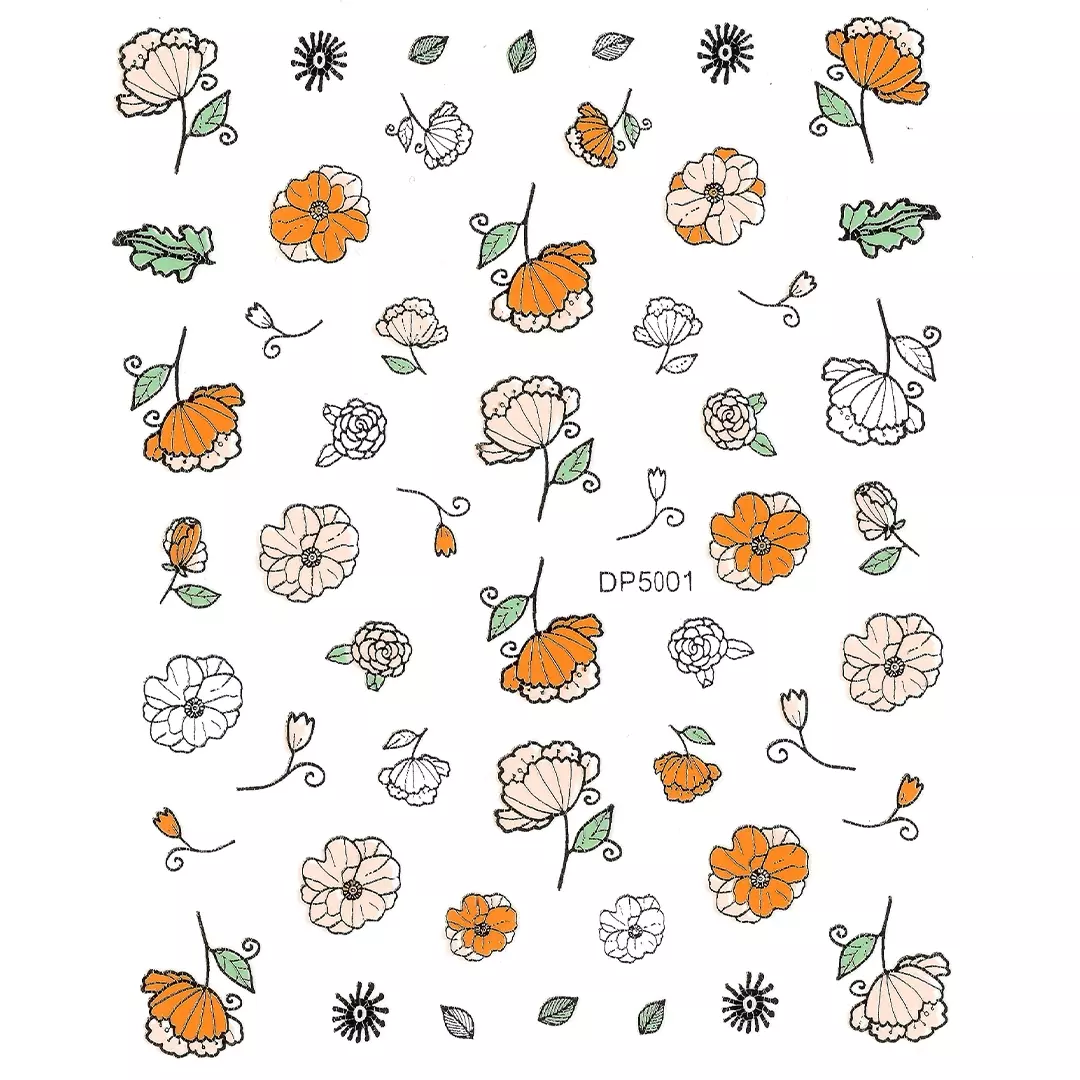 Abțibild autocolant cu motive florale și frunze aurite, modele perfecte pentru a adăuga un strop de eleganță unghiilor simple!